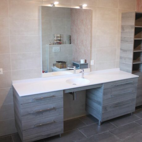 Meubles de salle de bain sur mesure adaptés pour répondre aux besoins des personnes à mobilité réduite tout en tenant compte de l'esthétisme. Nos meubles astucieux permettent aussi une utilisation de la salle de bain par toute la famille.