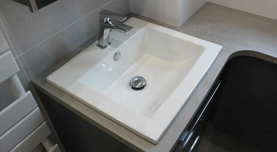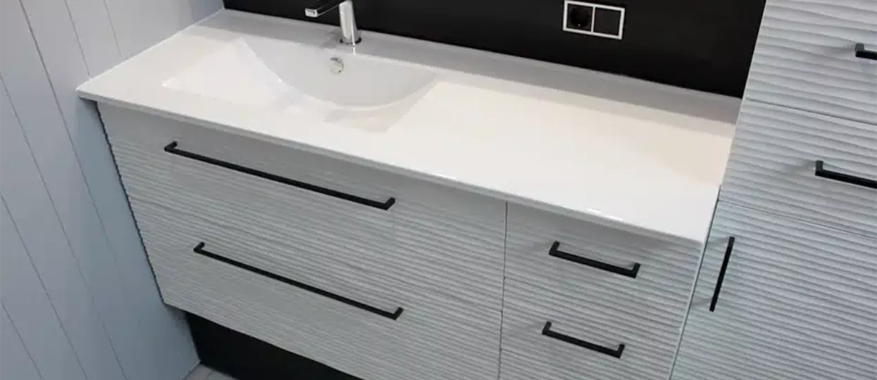 Les plans de toilette céramiques sont les plus couramment utilisés pour les meubles de salle de bain. économique, résistant et simple d’entretien.
