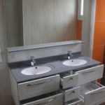 Voici un meuble au design classique avec un plan posé double vasque réalisé en résine solid surface. Le plan est ici réalisé avec 2 coloris différents.