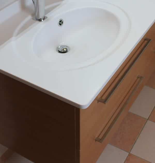 - Permet tous types de réalisations sur mesure (dimensions, coloris, choix de forme de vasque, angle, décrochement…)