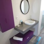 Certains plans de toilette sont équipés de vasques moulées, intégrées directement à la surface, ce qui facilite grandement l’entretien au quotidien et offre un rendu visuel épuré.