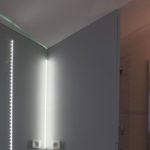 - La vue en plongée du miroir avec un éclairage par bande led sous la poutre.