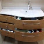 - L’aménagement sur mesure du rangement supplémentaire avec un tiroir sur le côté de la baignoire.