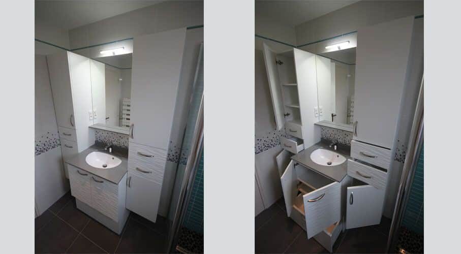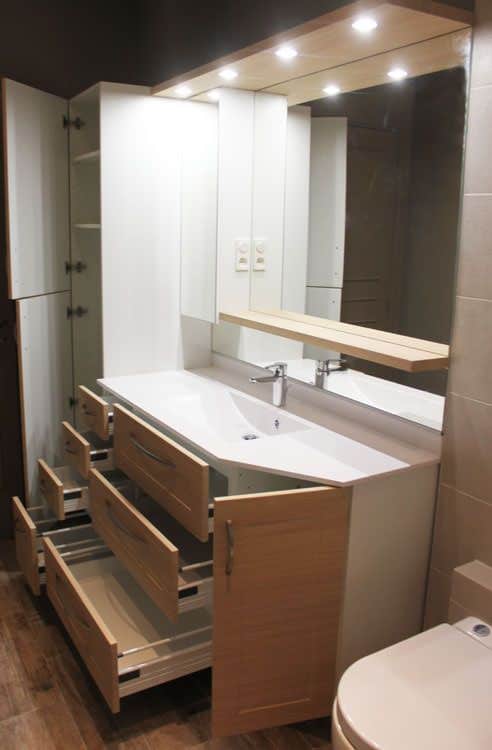 Le meuble de salle de bain doit être fonctionnel, s’intégrer à l’espace de la pièce et être beau. Il y a autant de salle de bains que de meubles différents dans nos créations. Ainsi, en réalisant vos meubles sur mesure dans notre atelier de fabrication en France, Atlantic Bain vous garantit un accompagnement personnalisé de votre projet, de sa conception à la livraison ou installation. C’est aussi vous permettre de bénéficier de circuits courts et du travail d’ébénistes qualifiés depuis plus de 30 ans. Demander un devis personnalisé. Vous pouvez également retrouver nos articles composant nos meubles sur notre boutique en ligne.