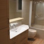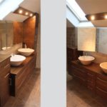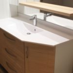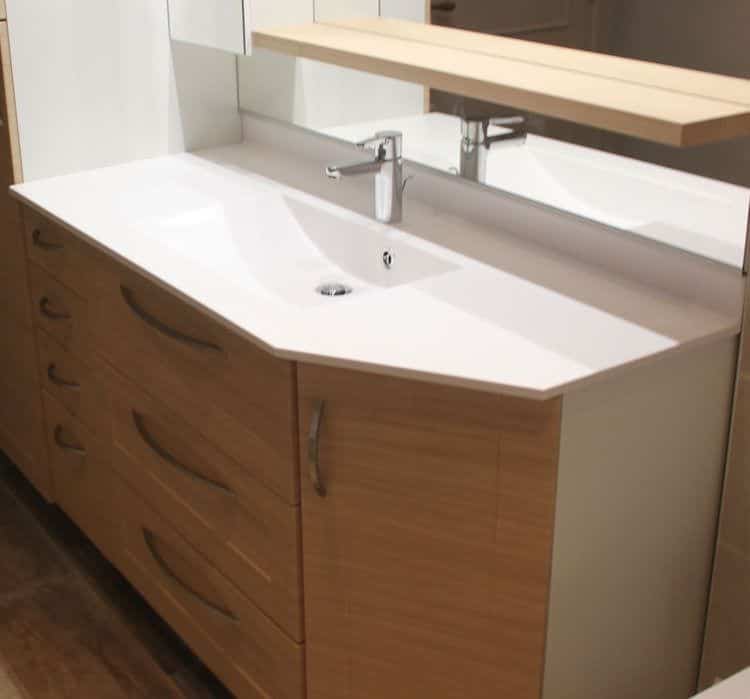 3. Meuble de salle de bains classique imitation bois avec pan coupé !