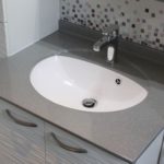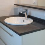 - La remontée au mur appelée dosseret pour éviter les infiltrations d’eau derrière le meuble