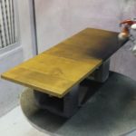 Couche de vernis puis une teinte sont appliquées sur le bois.