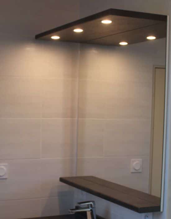 - Le rappel du plan de toilette au niveau de la tablette miroir
