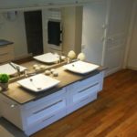 Les vasques collées sous plan, pour une finition épurée et facile à nettoyer.