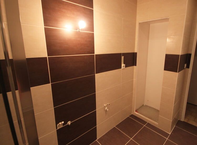 Le banc de douche et les niches en résine, pour plus de confort et de praticité.