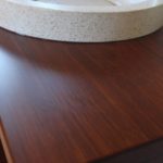 Le plan de toilette en résine moulée, à la fois résistant et facile d’entretien.