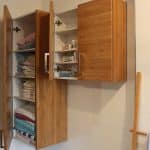 La niche de rangement en bambou, idéale pour organiser serviettes et panier à linge avec style et praticité.