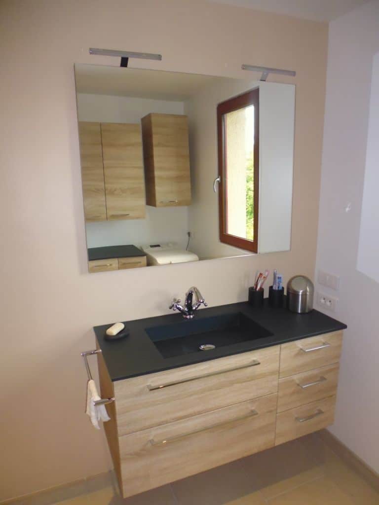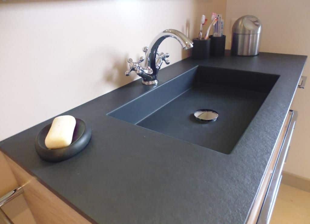 ⇒ Exemple d’un meuble avec un plan de toilette en résine relief ardoise