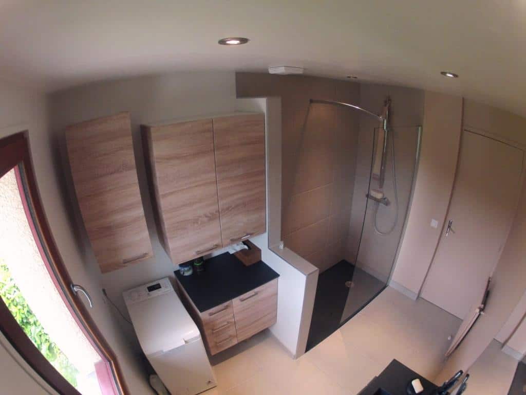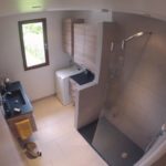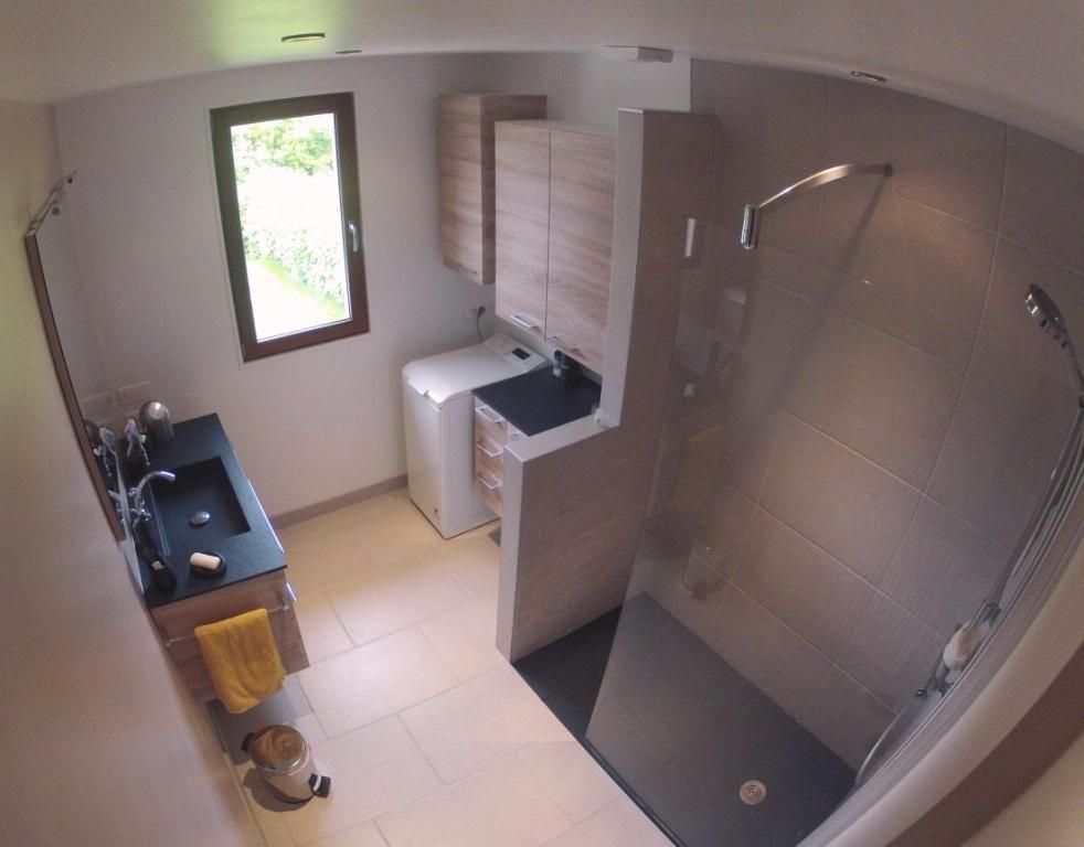Une grande douche à l’italienne complète l’aménagement pour un confort optimal au quotidien.
