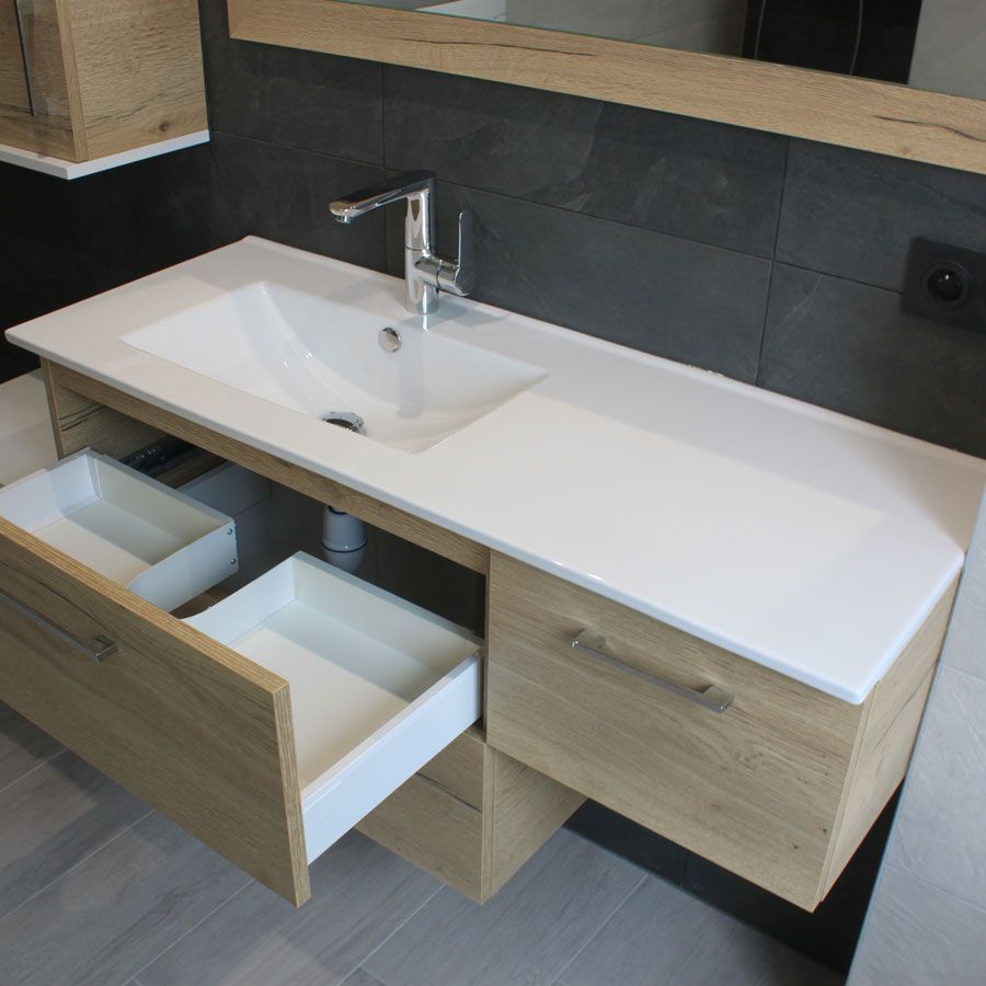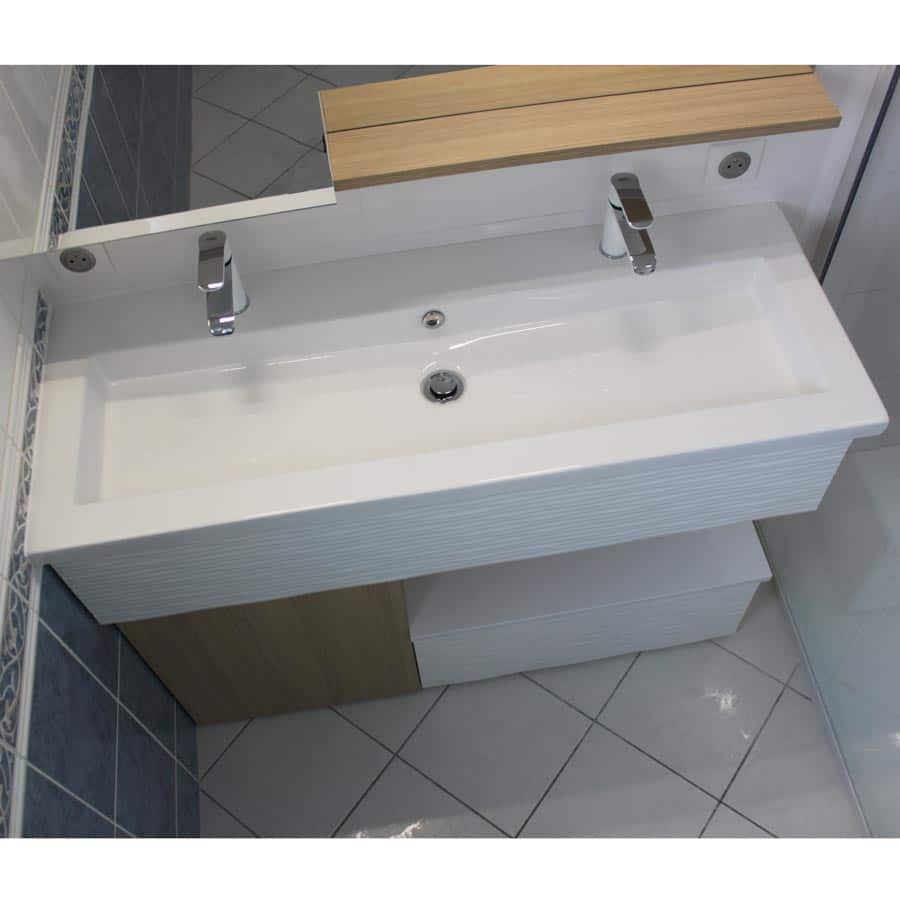 - La céramique est idéale pour une salle de bain familiale et lorsqu’il n’y a pas besoin de meuble sur mesure.