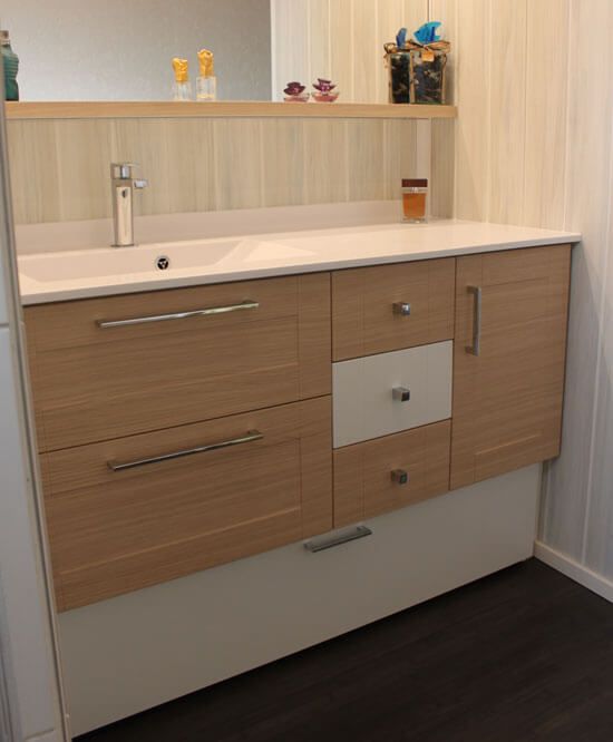 Les plans de toilette en stratifié sont moins cher et permettent également l’installation entre murs. De plus il y a un choix infini de finitions pour tous les styles de salle de bains.