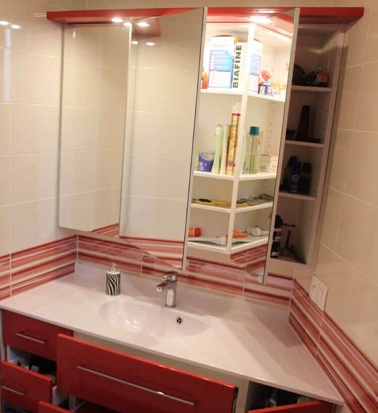 - L’armoire de toilette avec miroirs tryptiques adaptée à l’angle du mur