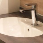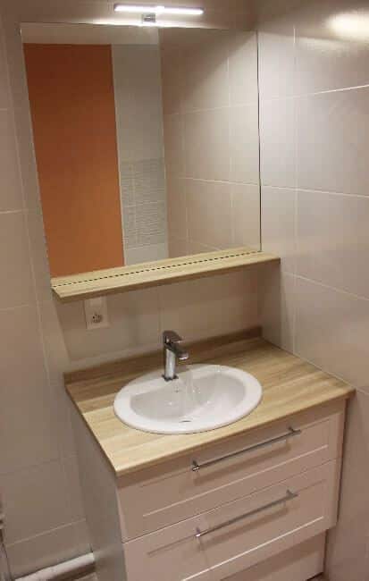 - Le lavabo collé sous le plan de toilette stratifié.