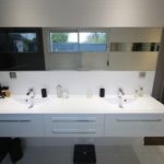 Le grand plan de toilette double vasque est moulé d’une seule pièce ce qui facilite sont entretien.
