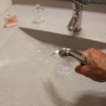 ⊕ La douchette est reliée directement au mitigeur pour être utilisé facilement d’une seule main. Lorsque la manette du mitigeur est ouverte, il suffit d’actionner la manette de la douchette et l’eau s’écoule alors de la douchette en stoppant le mitigeur.