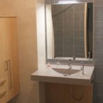 L’ensemble est composé d’une colonne deux portes et de deux tiroirs accessible. Le plan de toilette en Solid Surface est moulé avec un dosseret (remontée à l’arrière) et une retombée (devant et sur les côtés). La vasque PMR Oscar est positionnée au maximum au devant du plan de toilette pour être pratique jour après jour.