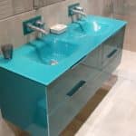 - Les plan vasque moulée en verre extra clair sont très design mais plus fragile au chocs. Les plans en verre sont fabriqués en Italie.