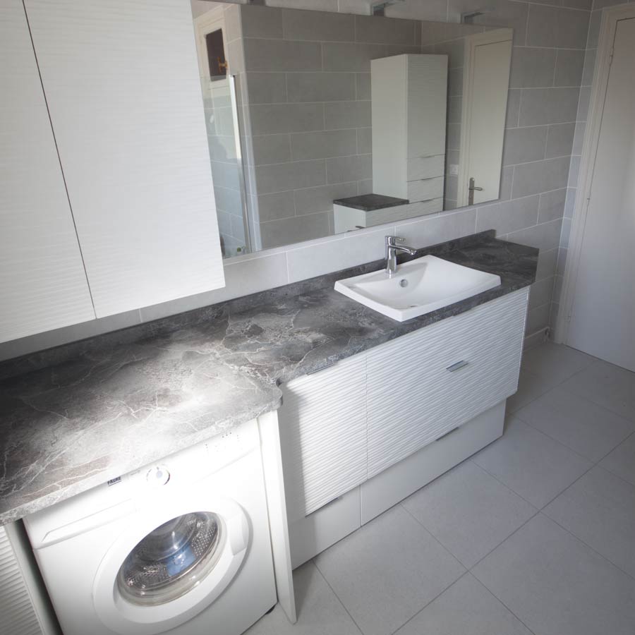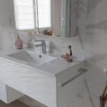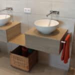 - Les vasques collées sous plan sont très discrètes et mettent en valeur le plan de toilette.