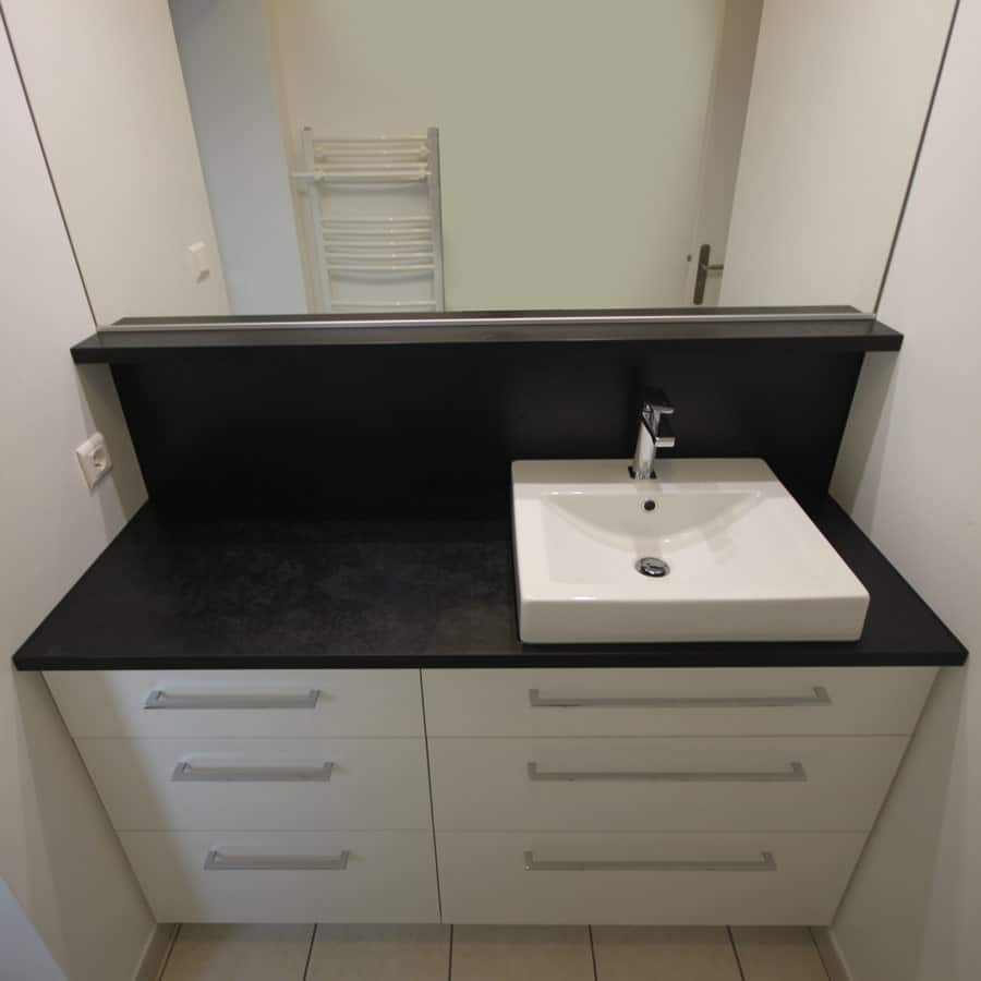 Les plans de toilette stratifiés sont très économiques et il existe un choix de finitions très large. Aujourd’hui les plans en stratifiés imitent parfaitement les matières minérales ou bois.