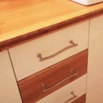 Portes Vérone polymère beige. Tiroirs Vérone merisier vernis.