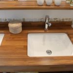 - Plan toilette avec dosseret usiné, 2 découpe pour vasque collée sous plan : larg 145 x