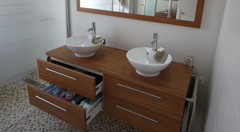Nous profitons ainsi d'une superbe salle de bains rénovée, pensée avec l'accompagnement éclairé/méthodique de Monsieur MORISSEAU et fabriquée à Vertou.