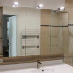 - Armoire de toilette 3 Portes – Largeur 129 x hauteur 87 x profondeur 18 cm Fonction triptyque – charnières porte du milieu à droite