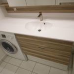 - Plan toilette Solid Surface blanc satiné – Largeur 159 x profondeur 63 x ép 1,5 cm Dosseret hauteur 5 cm – 1 vasque moulée ovale PMO – 02 avec trop plein
