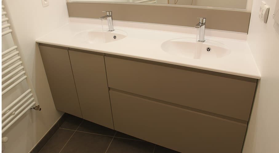 Plan de toilette en résine Solid Surface blanche satiné – 2 vasques Ovale