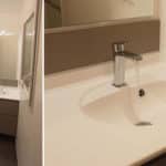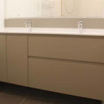 - Plan de toilette résine blanc satiné : larg 172 x prof 56 x ep 1.5 cm – dosseret de 5 cm