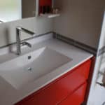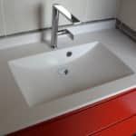 Plan de toilette en Résine Solid Surface blanche satiné avec dosseret (remontée) vasque madrid.