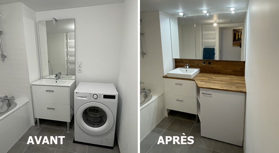 🌿 Meuble de salle de bain sur-mesure avec lave-linge intégré