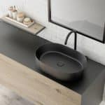 - Vasque à poser ronde au ovale noire en céramique ou en résine solide surface