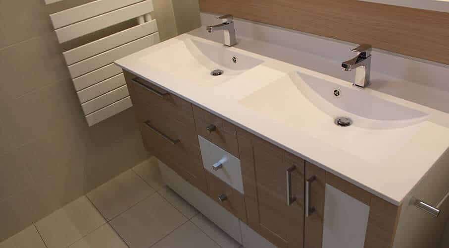 - Plan résine blanc satiné – 2 vasques Madrid : larg 140.5 x prof 56 x ép 1.5 cm