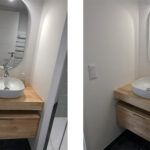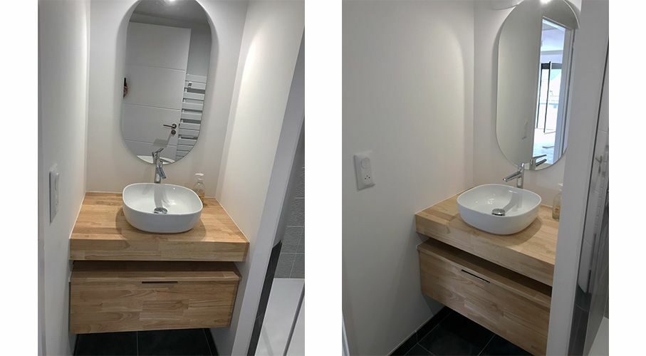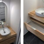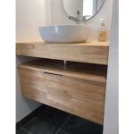Plan toilette et meuble en bois massif Hévéa vernis naturel