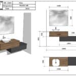 - Meuble sous vasque 1 tiroir, larg 100 x haut 25 x prof 48 cm – prof tiroir 40 cm