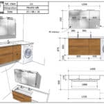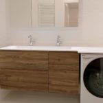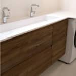Meuble salle de bain imitation noyer avec grande cuve et lave linge intégré sous plan en résine