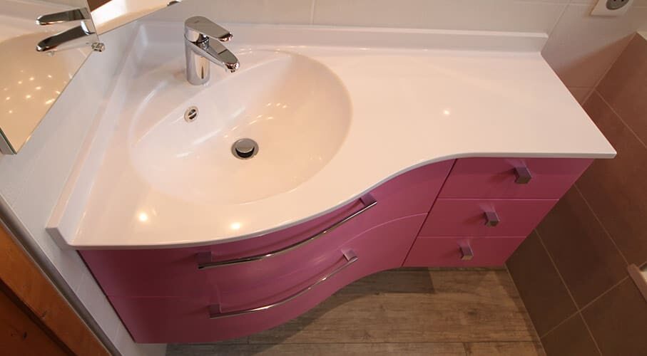 - Plan de toilette en résine blanc brillant : larg 101 x prof 54/35 x ép 1.5 cm