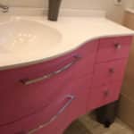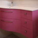 - Plan de toilette en résine blanc brillant : larg 101 x prof 54/35 x ép 1.5 cm