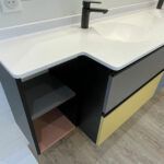 - Meuble sous-plan ouvert – 1 étagère Largeur 30 x hauteur 56 x profondeur 30 cm Caisson mélaminé laquées satiné mat suivant faïence – bas et étagère laqué noir mat