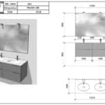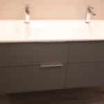2 vasques Cocoon avec trop plein invisible. Plan sans dosseret. - Miroir solo larg 130 x haut 90 x ép 2,5 cm – chant laqué gris idem façades