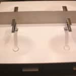 - Plan de toilette résine solid surface blanc satiné, larg 131 x prof 56 x ép 1,5 cm