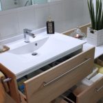 - Meuble sous vasque 1 grand tiroirs : larg 80 x prof 54 x haut 30 cm.