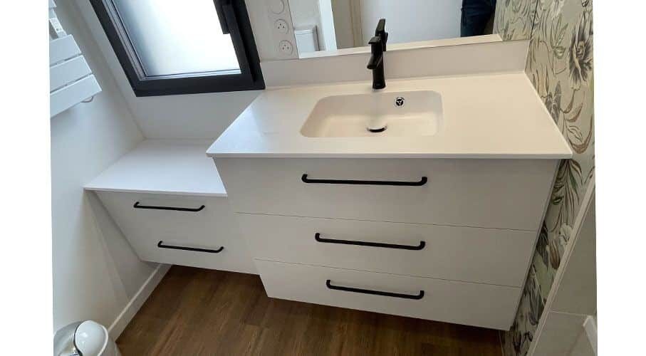 Fileur 15 mm coté mur. - Plan toilette Solid Surface blanc satiné