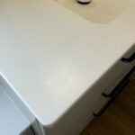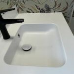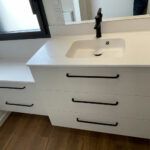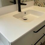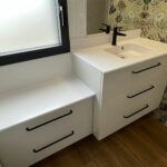 Fileur 15 mm coté mur. - Plan toilette Solid Surface blanc satiné